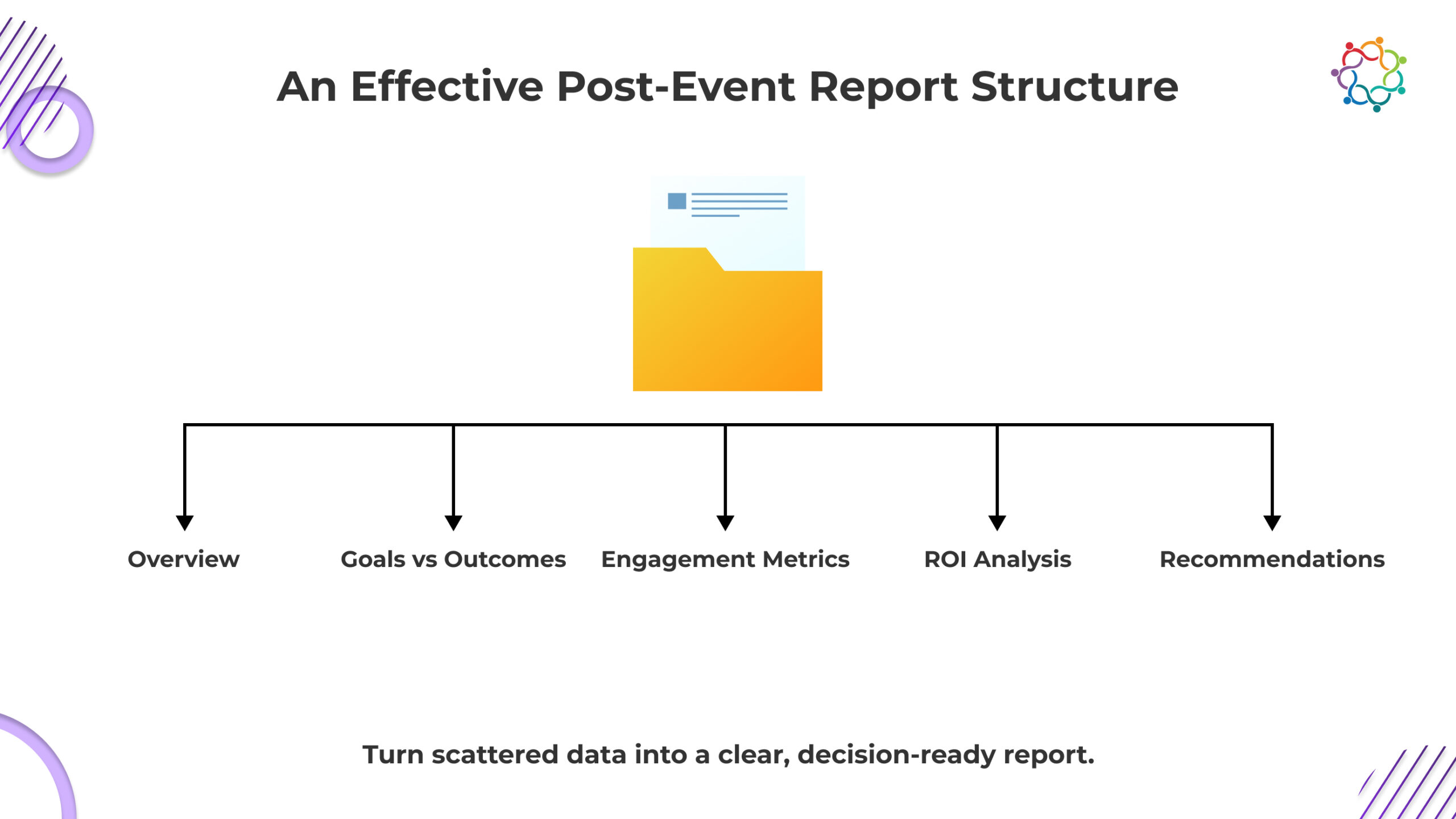 A solid post-event report is not just a data dump but a structured storytelling exercise, what digs into important details for each stakeholder. An operational structure might consist of: