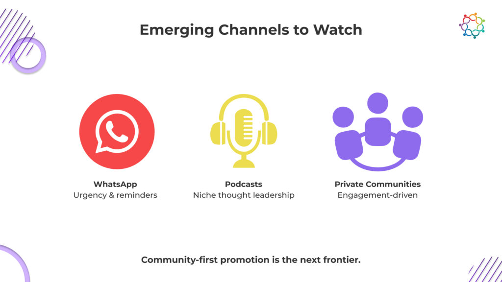 As 2025 approaches, there still isn’t a “best” B2B event promotion channel. The winners are the teams that effectively blend owned trust, organic credibility, paid precision, partner amplification, and experiment with new frontiers like WhatsApp, podcasts, and private communities.