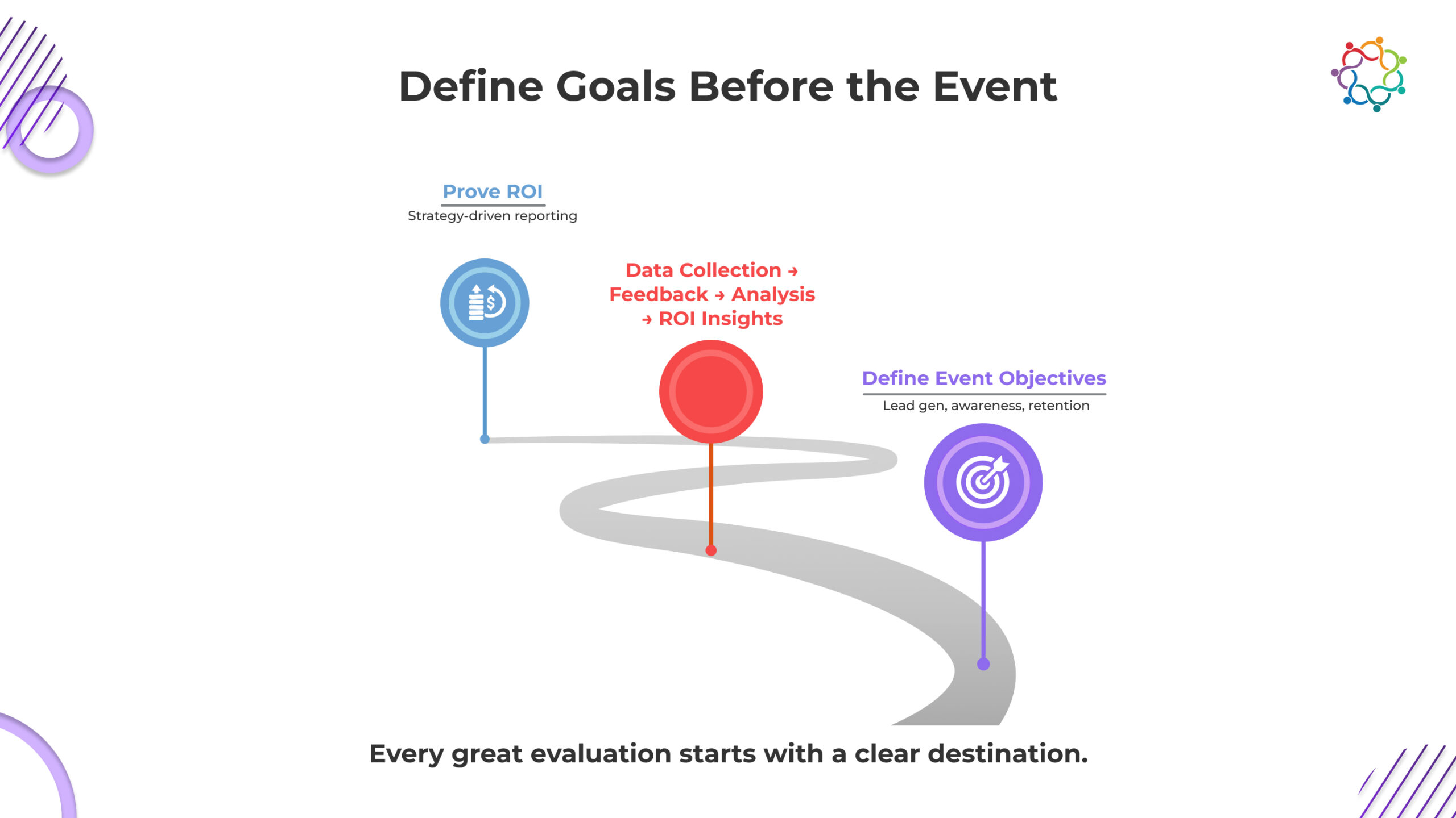 Good evaluation starts well before the event. Without solid goals, post-event reports will have little meaning and will often just serve as vanity metrics.