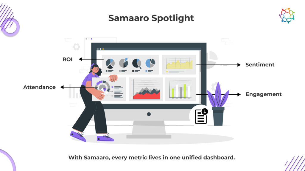 Built for modern marketing teams, Samaaro’s AI-powered event-tech platform helps you run events more efficiently, reduce manual work, engage attendees, capture qualified leads and gain real-time visibility into your events’ performance.