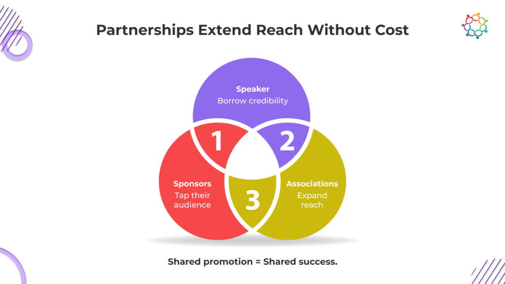 Associations and trade media carry authority credibility. Their endorsement signals credibility, and that attending your event is a must-attend for industry -it creates event FOMO in your audience.