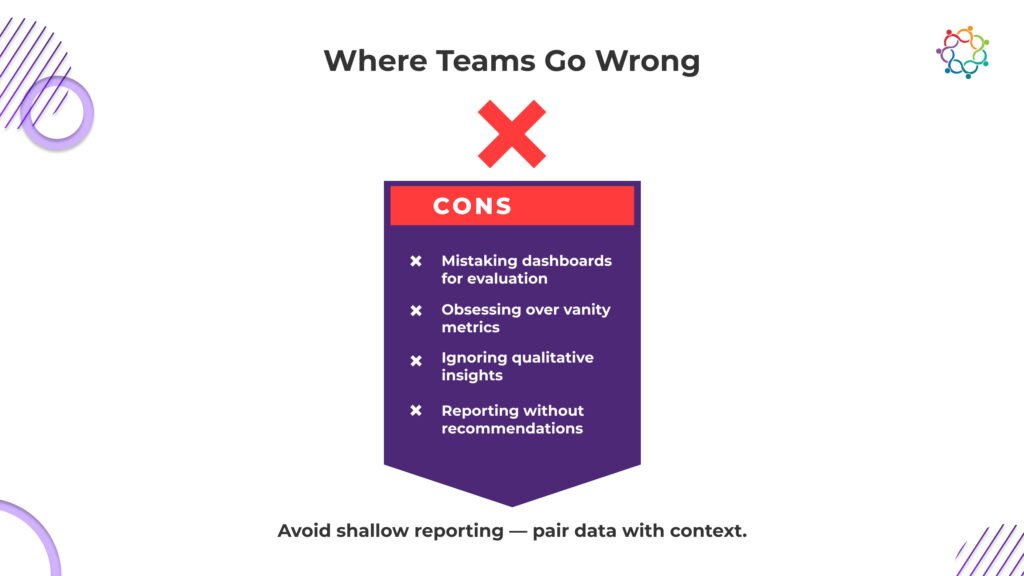 Even seasoned/practice teams experience challenges when evaluating their events. Some very common things not to do include;