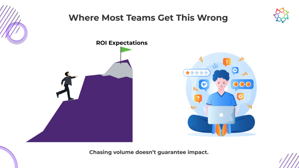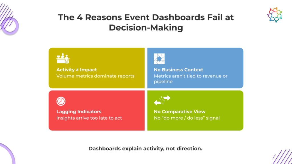 Despite years of experience, many teams repeat the same mistakes. They defend events emotionally, relying on anecdotal sales praise. They hide behind vanity metrics that feel impressive but answer no real questions. They over-attribute success, undermining trust when claims are scrutinized.