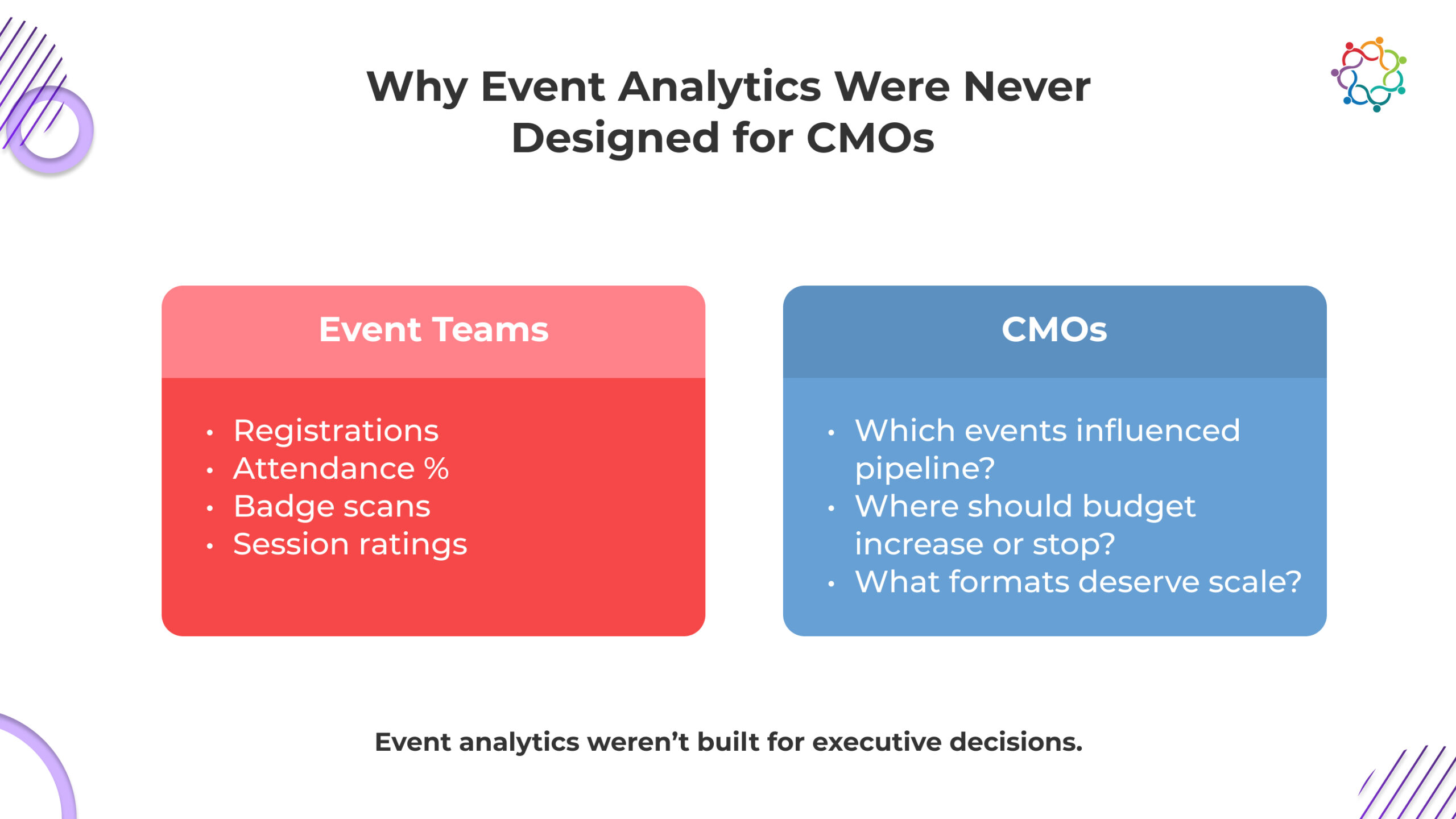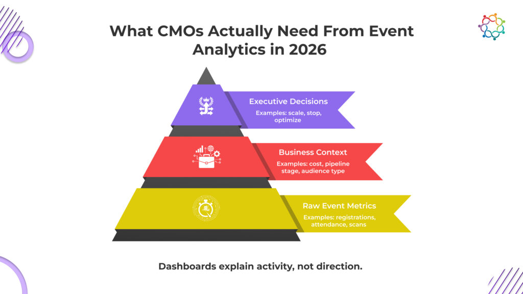 When executives ask about event ROI, they are not asking for more charts. They are asking questions that guide decisions: