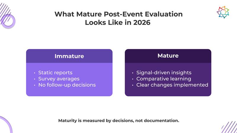 Event marketing maturity is measured across portfolios, not calendars. Platforms enable teams to move from one-off assessments to strategic understanding, revealing how different events contribute collectively to marketing and revenue goals.