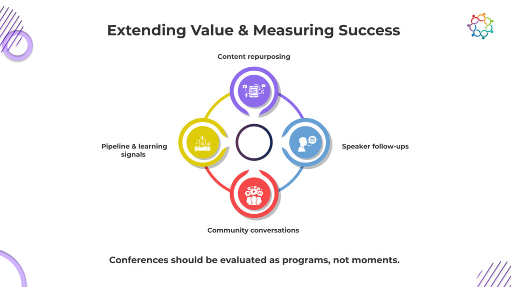 Not all event value shows up neatly in pipeline reports. Some of the most important outcomes are strategic in nature. Account reactivation, executive relationship building, and expansion conversations often begin at events long before revenue is booked.