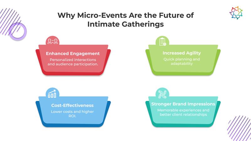 Another distinct advantage of micro-events is the enhanced flexibility they come with. Unlike large scale events, which take months of preparation, micro-events can usually be created and executed in a shorter time. A networking dinner? A product demonstration? Micro-events are suitable for smaller groups and both can be arranged to take place faster than the larger event. The smaller scale provides increased flexibility when making decisions and pivoting when necessary.