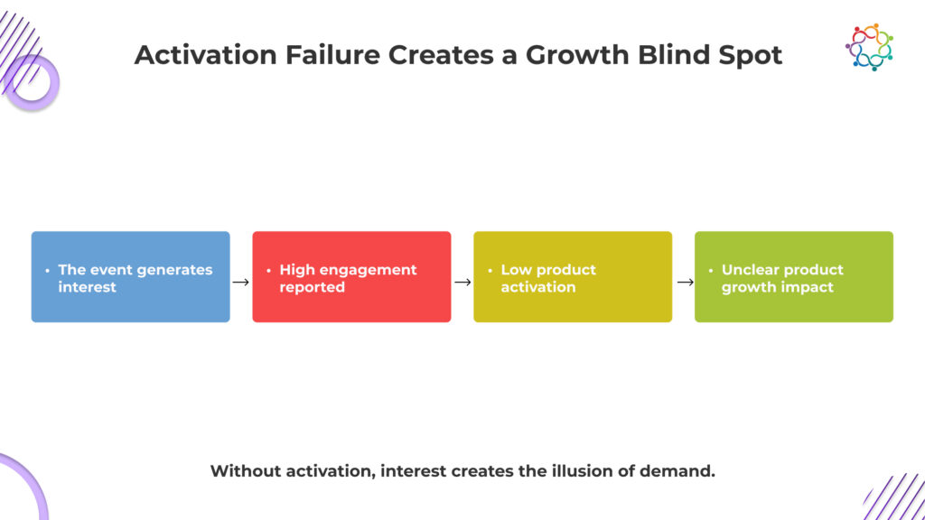 Event engagement creates the appearance of demand, but without activation, it remains unverified. Teams mistake visibility for traction, leading to decisions based on perception rather than actual product usage patterns.