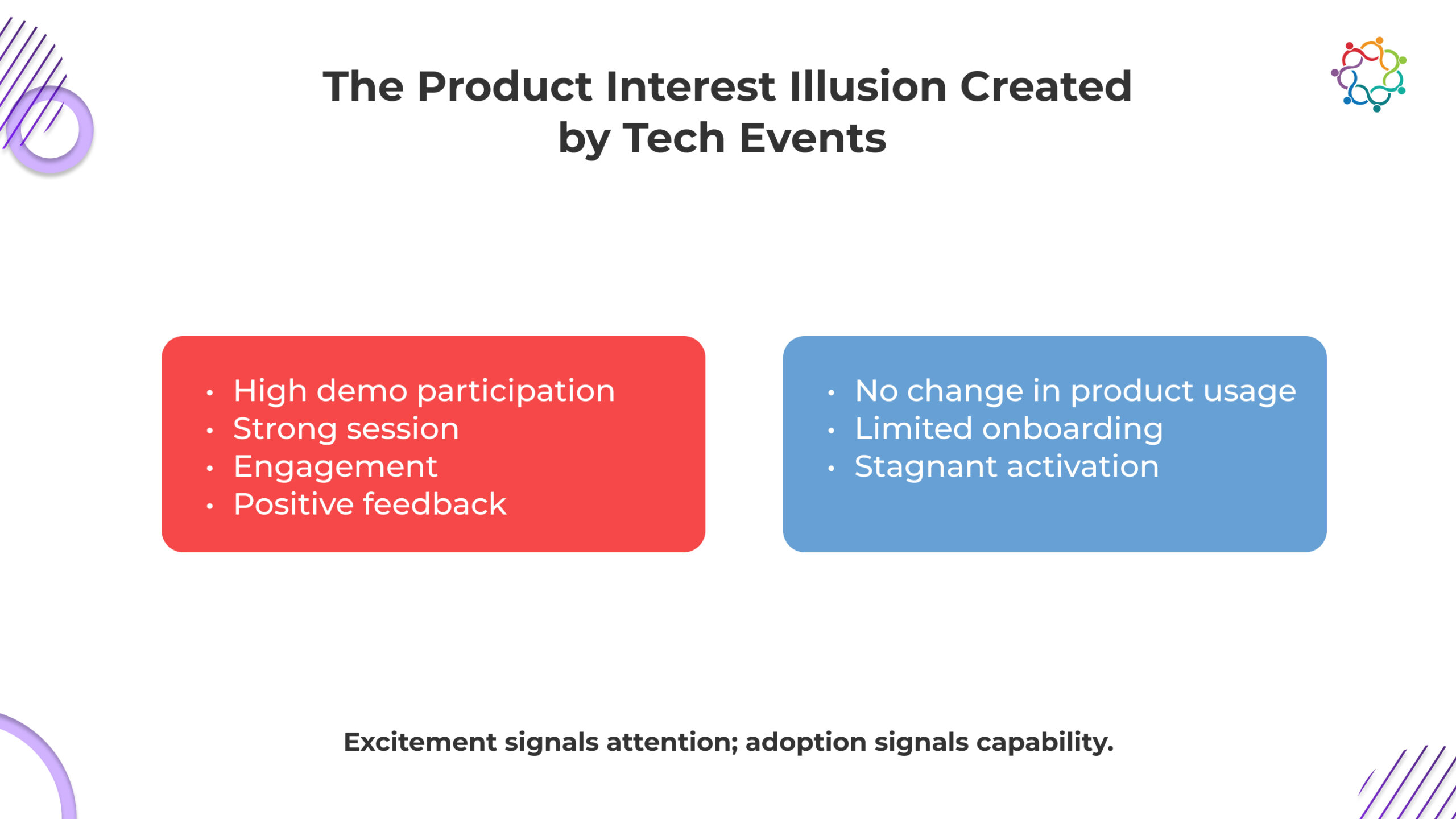 When enthusiasm is mistaken for readiness, growth forecasts inflate while activation stalls. Events generate attention. Product growth depends on behavioral commitment.