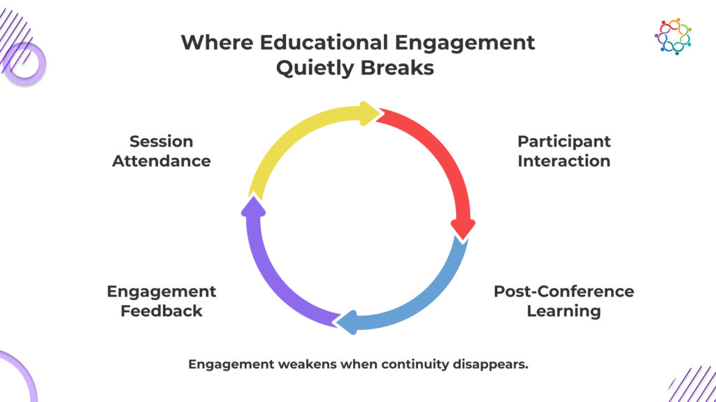Without post-conference engagement continuity, learning remains an isolated exposure rather than a measurable progression that strengthens clinical competence over time.