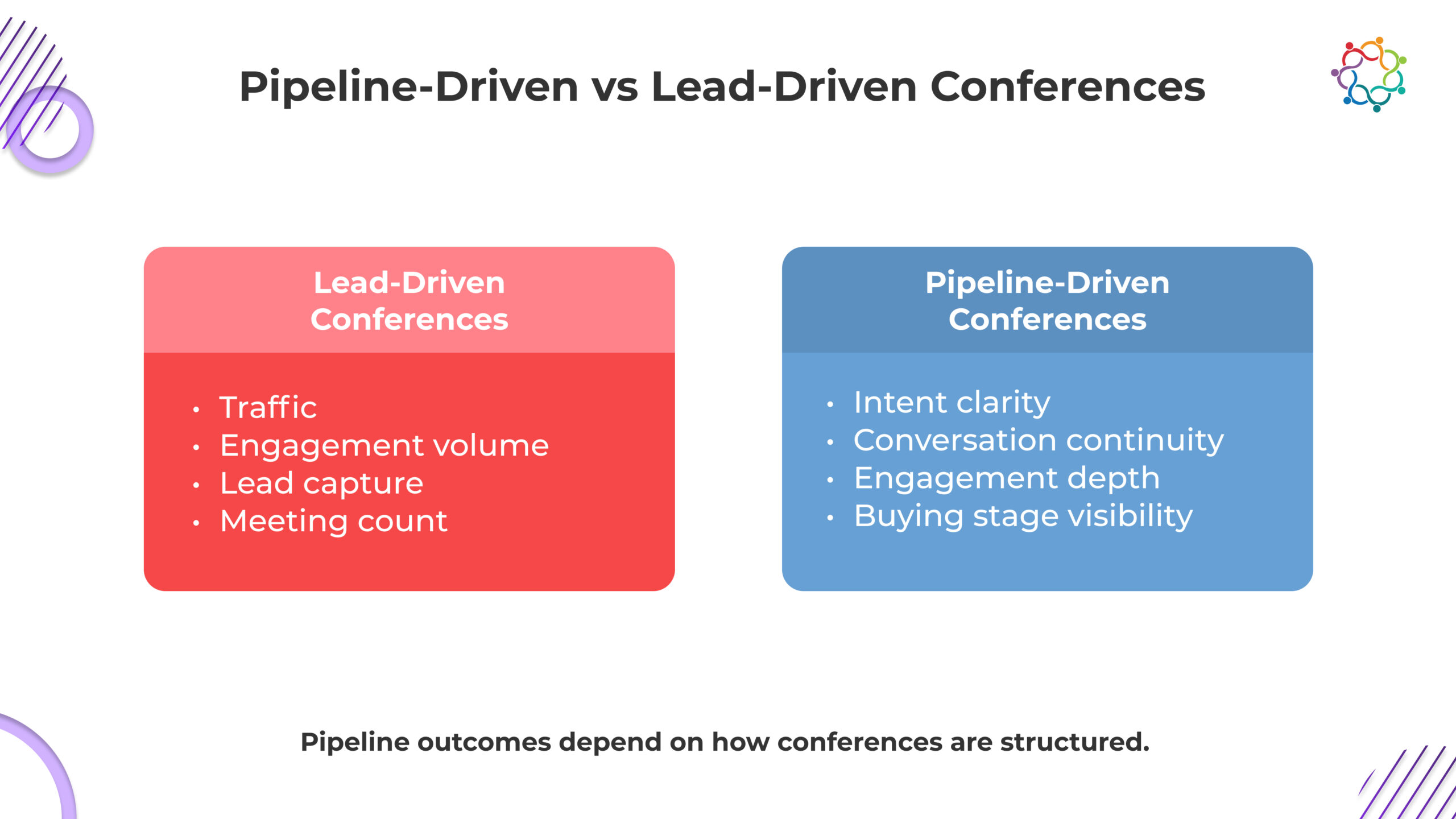 If your conference cannot influence what sales does the next day, it is not a pipeline system. It is a temporary engagement spike. Pipeline-driven conferences are designed to produce usable intelligence, not just interaction.