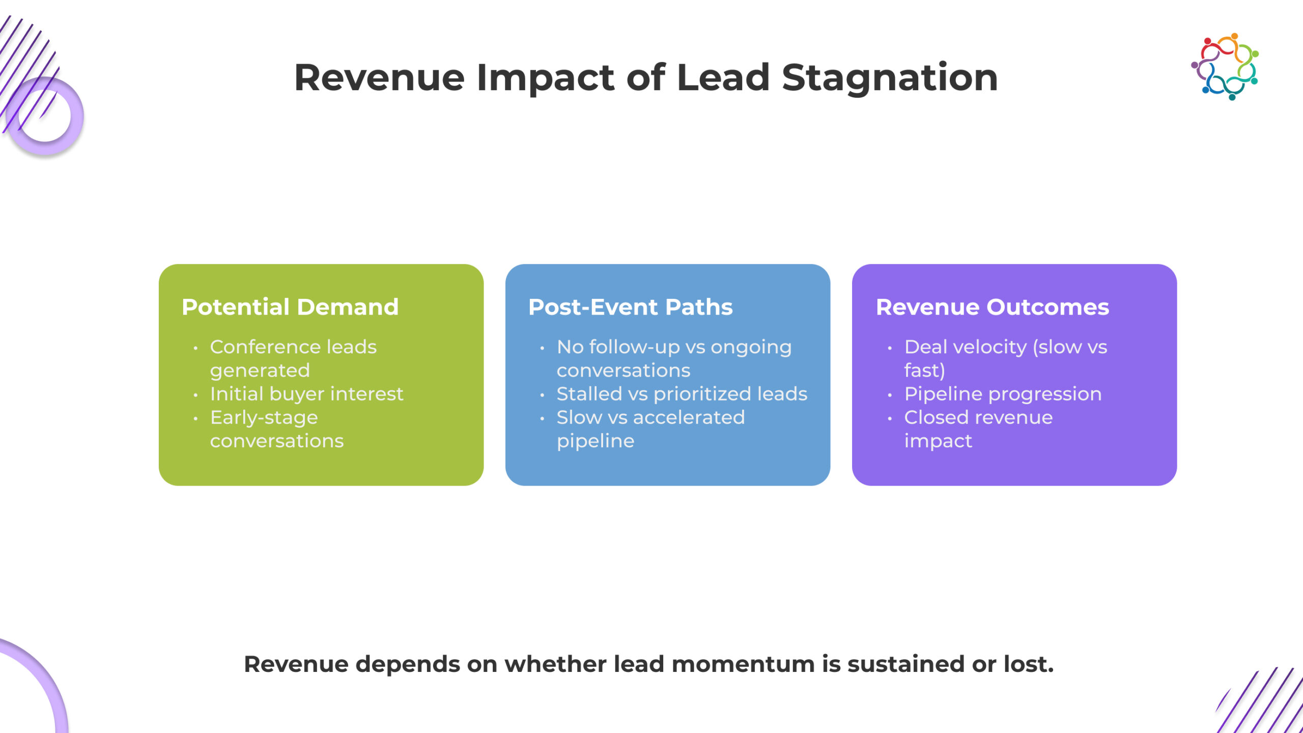 When post-event conversion fails, the damage is not limited to missed opportunities. It destabilizes your entire revenue model. The pipeline slows down at the top, which delays everything downstream. Forecasts become assumptions instead of projections.