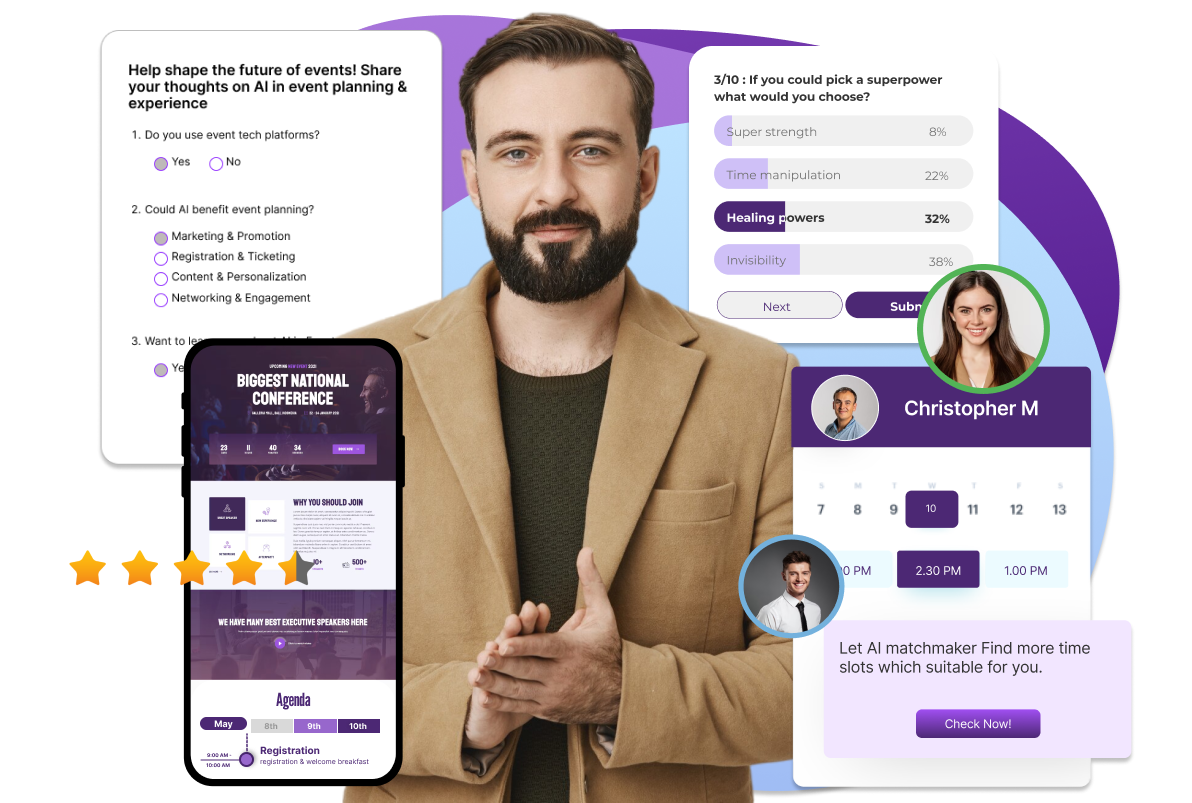 AI-Powered Networking: Create meaningful connections by matching guests according to their interests.