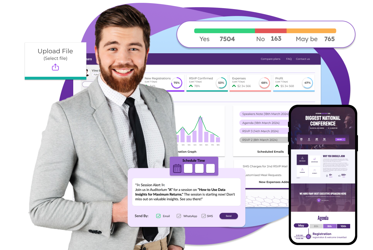 Samaaro simplifies everything - registration, ticketing, scheduling, analytics - in one platform. It scales effortlessly, adapting to any size conference