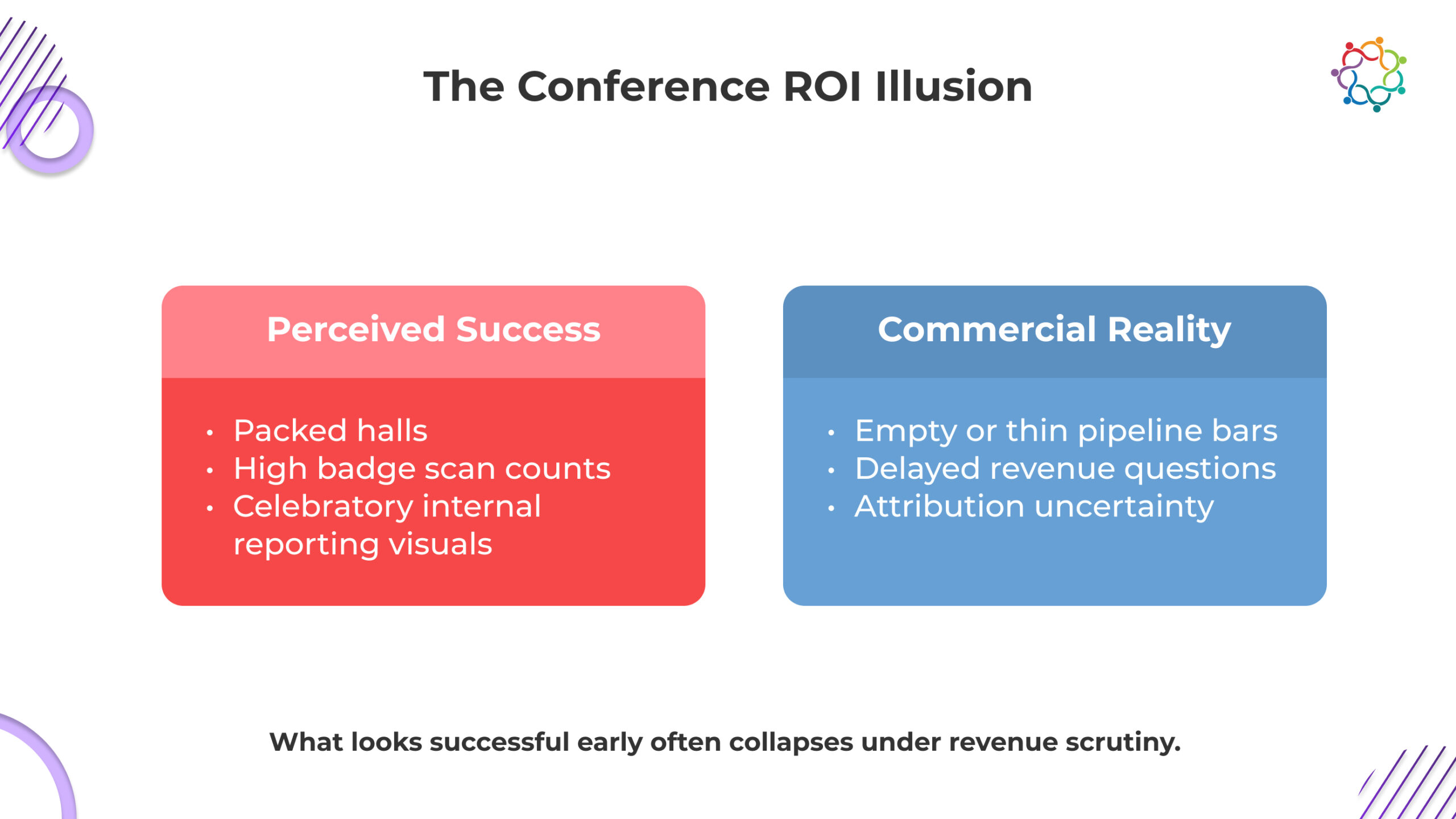 Conference marketing ROI is usually defended after the event, when scale has already been celebrated. At that point: