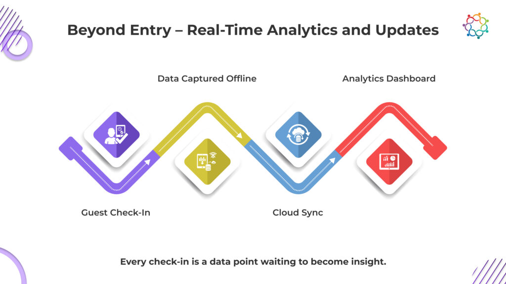 These apps are designed for quick entry without any touching, utilizing QR code scanning and tap-to-enter NFC, still working offline. The app simply checks the scanned code against the guest list that is stored locally. This is the fastest way to verify guests and is a core function of how offline check app technology facilitates a fast and uninterrupted flow of guests being checked-in, thus the lines are minimized even when doing this during peak capacities.