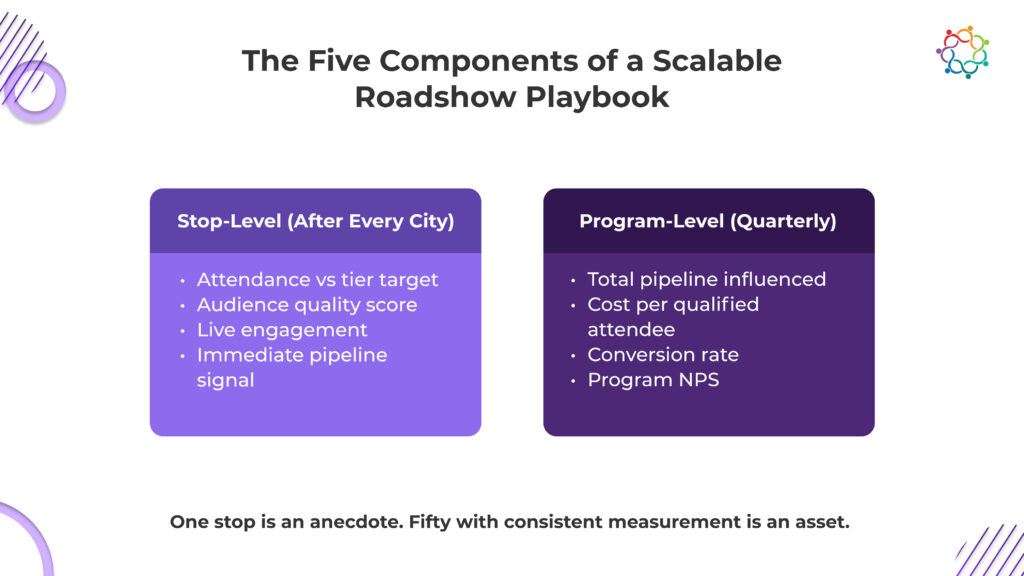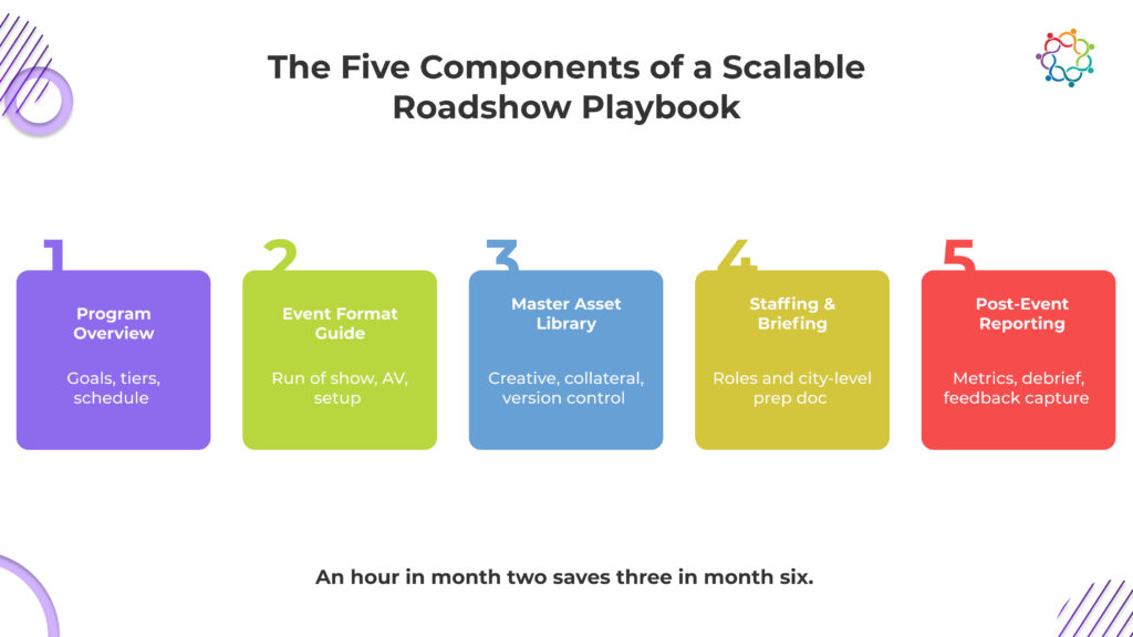 Every scaled roadshow program that runs with consistency without burning out the team has one thing in common: a documented playbook that any competent team member can pick up and execute from. Every program that collapses under its own weight at scale lacks one.
