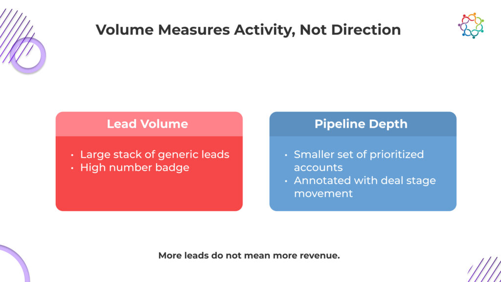 Reality check: Systems and incentives often prioritize what is easiest to measure, rather than what truly drives revenue. The field marketing team’s credibility suffers not due to poor execution, but due to misaligned metrics.