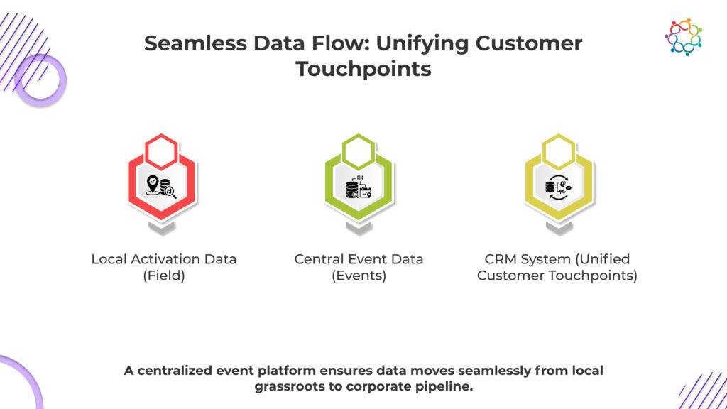 The crucial technology function is the effortless Data Flow Synergy. The data generated by the field marketing team (i.e., attendance at small local workshops, sign-ups for in-person demos) should flow seamlessly back to the central CRM via the event platform. On a parallel effort, the data generated at the corporate event (i.e., attendance at keynotes, connections made through personalized networking) should flow back to FE teams to inform follow up strategies.