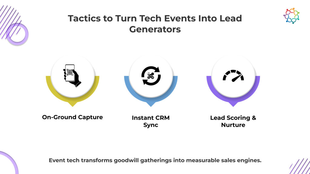 CRM integration to ensure real-time sync – Leads collected at the event must flow directly into your CRM, tagged with metadata that gives context to how they were captured. The objective is to eliminate lag time and put the wheels in motion for the follow-up while the lead is still warm.