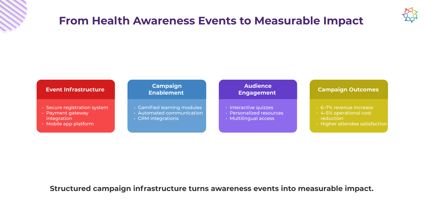Managing and running patient awareness campaigns come with unique challenges. A strong, secure event management system was essential to protect patient privacy, build trust, and ensure campaign success.