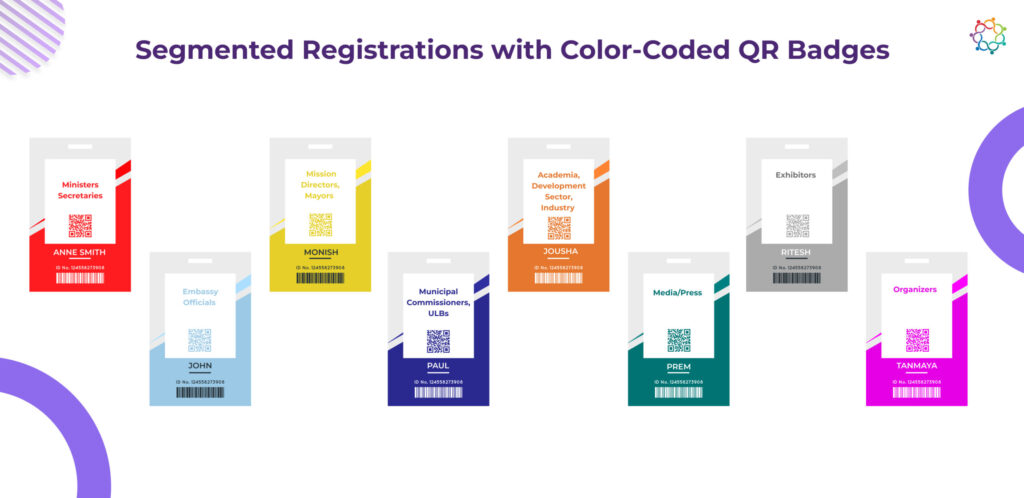 Segmented registrations with color-coded QR badge